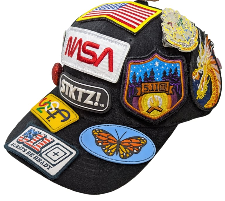 In 2019, he envisioned transforming a plain black baseball cap by using a Velcro-like loop material for attaching tactical patches and items. One could theme it out as often as they like;